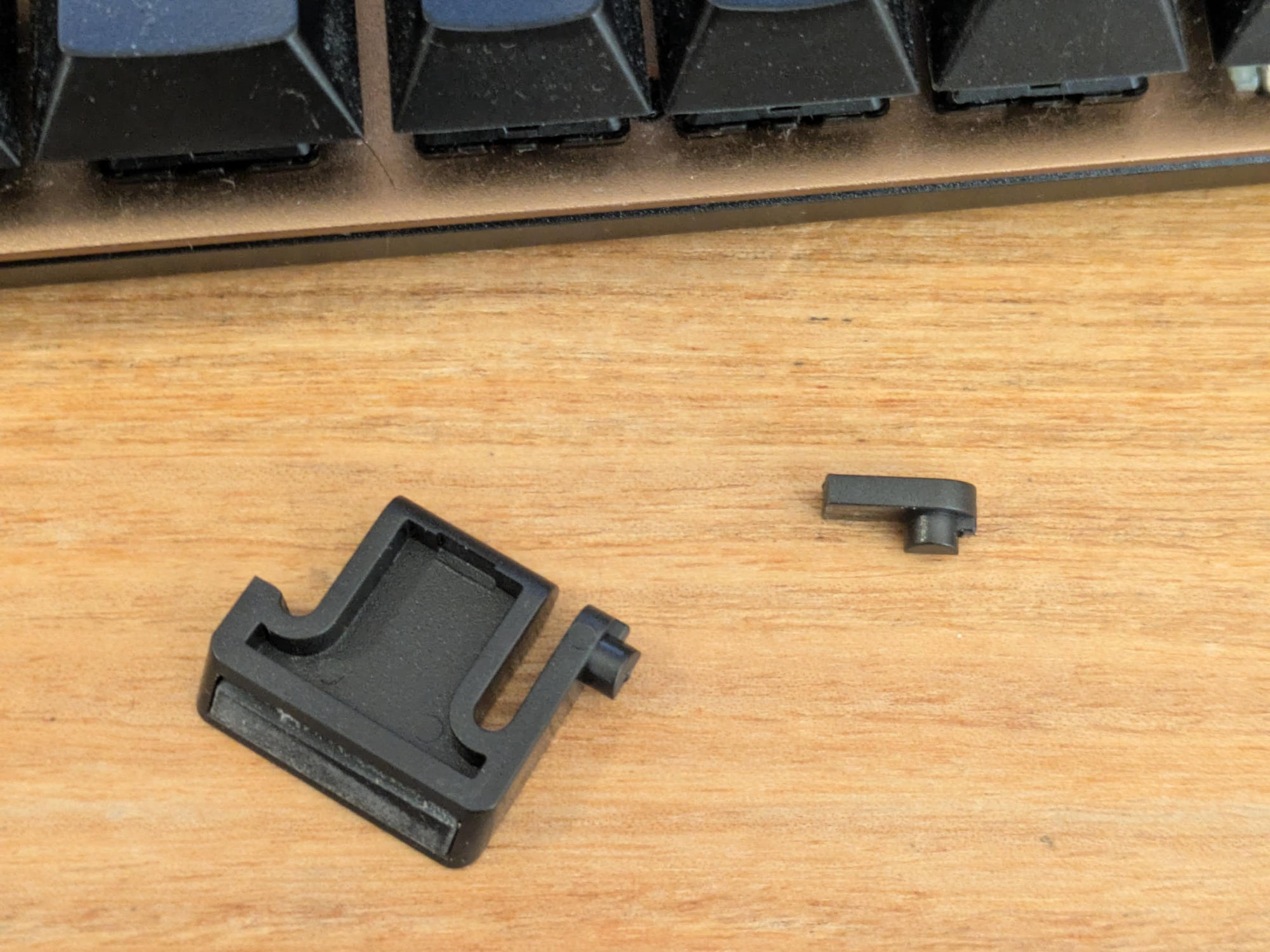Ich suchte zunächst bei Google nach Ersatzteilen, fand aber nur 3D-gedruckte Ersatzteile bei eBay. Die waren erstens nicht besonders schön und zweitens auch noch relativ teuer. Also kontaktierte ich Freitag mittags(!) den Support und fragte ganz konkret, wo ich das Ersatzteil kaufen kann. In der Zwischenzeit musste ich mit der Tastatur in der flachen Position weiterschreiben, aber gut.