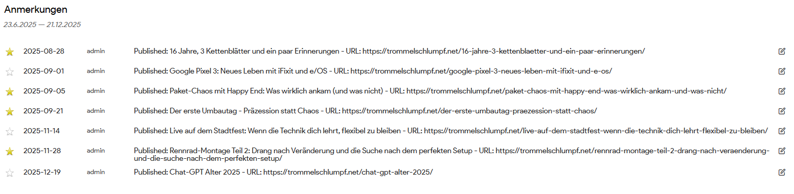 Interessant finde ich die starke Dominanz der Jahre 2021 und 2022. Das sind Artikel, die ich während den Lockdowns geschrieben habe. Zugegeben, in dieser Zeit habe ich mehr verfasst, da einfach viele meiner sonstigen Aktivitäten nicht stattfinden konnten.