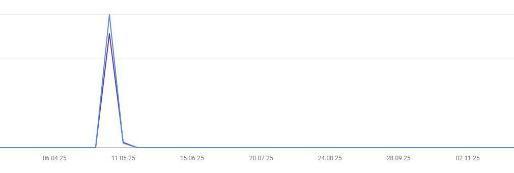 Ein durchaus unerwarteter Erfolg findet sich auf Platz 3. Der Artikel über meine Tastatur entstand aus einer Verkettung von Zufällen und wurde dann im Mai 2025, also drei Monate nach der Veröffentlichung in Google Discover angezeigt, was einen enormen Traffic auf den Artikel erzeugte. Hier eine Grafik für diesen Beitrag aus der Discover-Listung bei Google: