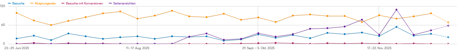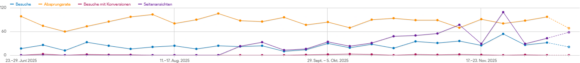 Es zeichnet sich jedoch ab, dass diese Serie dafür sorgt, dass die angesehenen Seiten (lila Linie im folgenden Graphen) pro Besuch steigert. Aktuell ist auch noch ein fünfter Beitrag geplant.